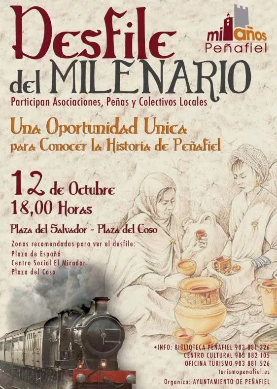 El 12 de octubre alrededor de cuatrocientos peñafielenses y vecinos de la comarca, coordinados por asociaciones, peñas y colectivos locales, van a recrear los momentos históricos más relevantes de Peñafiel en el Desfile del Milenario vestidos pertinentemente para la ocasión. El acto, organizado por el Ayuntamiento de Peñafiel, se encuadra dentro del programa de actividades que se están realizando a lo largo del año 2013 para conmemorar el milenario de la entrega del Fuero a la localidad por el conde castellano Sancho García en el año 1013.