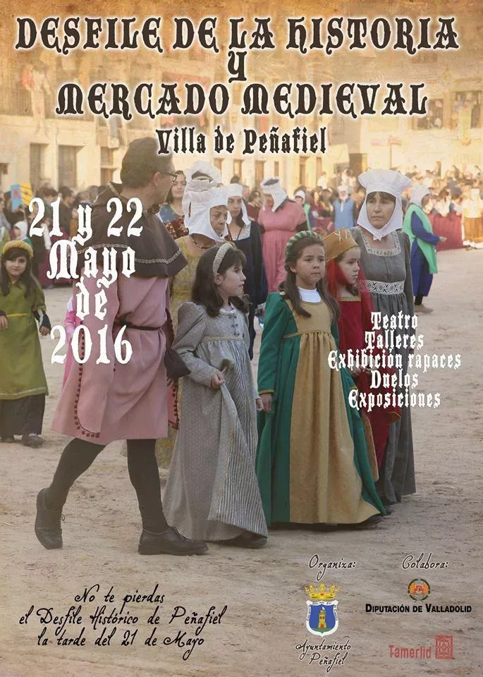 Los días 21 y 22 de Mayo se celebrará en Peñafiel el Mercado Medieval y el Desfile de la Historia de la Villa, donde vecinos y asociaciones culturales representarán aquellos momentos históricos más importantes por las calles (Vacceos-Romanos-Sancho García Conde de Castilla-Infante D. Juan Manuel-Dominicos San Pablo-Pedro Girón Duques de Osuna-Invasión Francesa El Empecinado-Expediciones Carlistas y El Ferrocarril).
