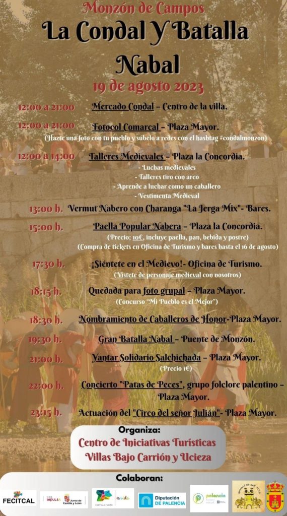 El sábado 19 de agosto de 2023 se celebrará en la localidad palentina de Monzón de Campos La Condal y la Batalla Nabal.