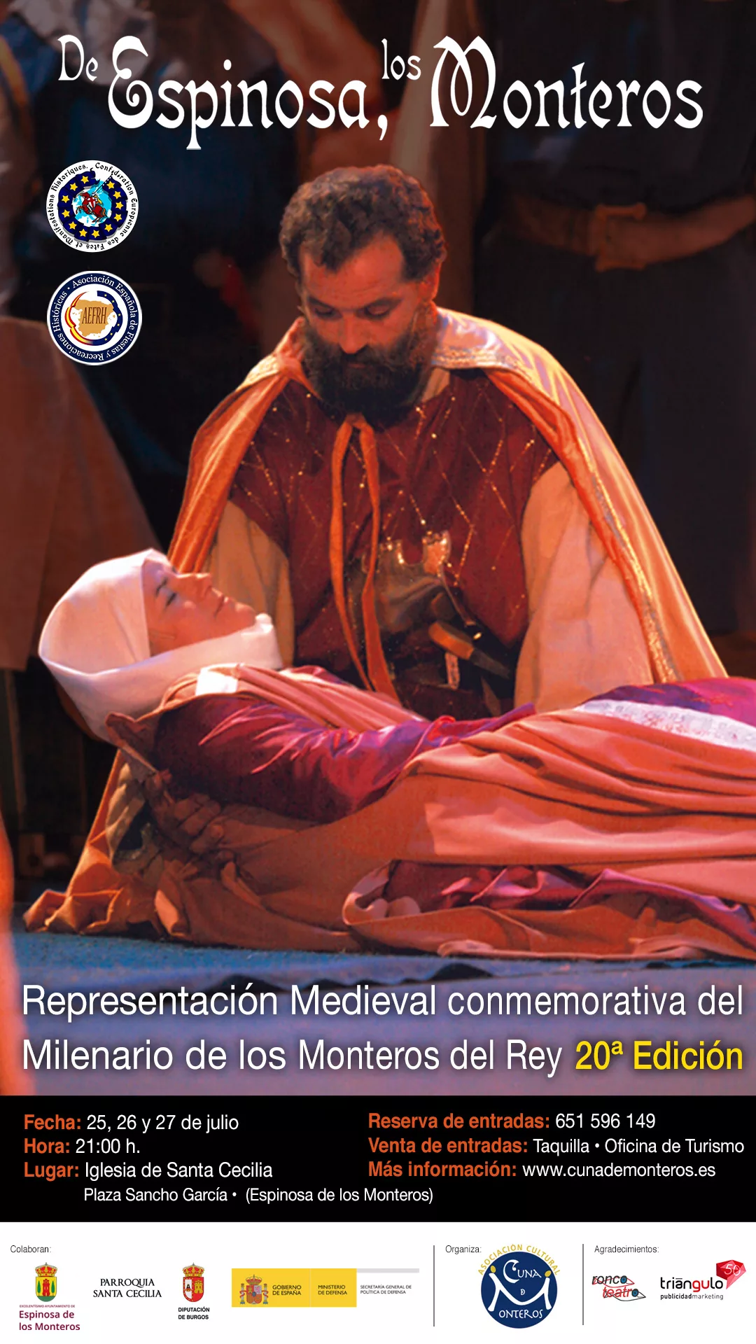 Los días 25, 26 y 27 de julio de 2025 a las 21:00 en la Iglesia de Santa Cecilia de Espinosa de los Monteros, se pondrá en escena la representación medieval «De Espinosa, los Monteros».