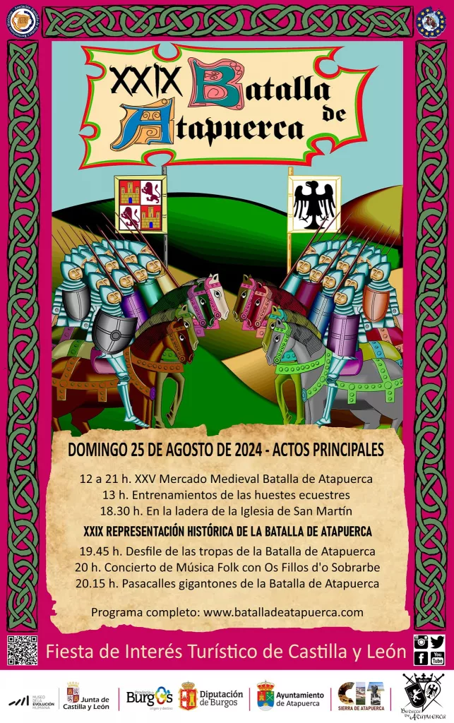 El domingo 25 de agosto a las 18:30h en la ladera de la Iglesia de San Martín de Atapuerca tendrá lugar la XXIXª Representación Histórica de la Batalla de Atapuerca. Se trata de una celebración gratuita, celebrada al aire libre y una fiesta declarada de interés turístico de Castilla y León. Ese mismo día también se celebrará el XXV Mercado medieval de 12:00 a 21:00 h.