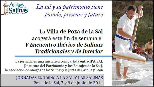 La Asociación de Amigos de la Salinas de Poza, IPAISAL y la Junta de Castilla y León, reunirán este fin de semana (7 y 8 de junio) en la localidad burgalesa de Poza de la Sal,  a diferentes instituciones que trabajan en la gestión del patrimonio salinero de España, Portugal y Reino Unido. Esta actividad se enmarca en la línea de puesta en valor del patrimonio salinero que la Asociación junto con el consistorio pozano viene desarrollando desde hace unos años.