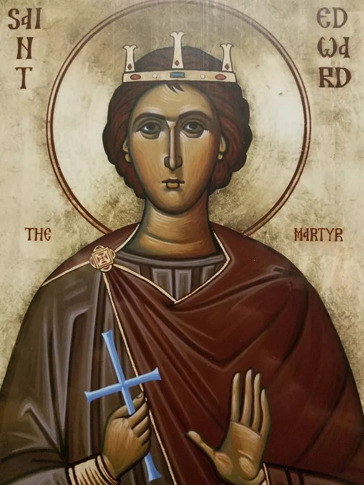 La muerte de Edgar en 975 desató una virulenta disputa entre los partidarios de sus dos hijos menores supérstites. Eduardo contaba con el estimable apoyo de Dunstan (c. 909-988), arzobispo de Canterbury y de Æthelwine (c. 992), Ealdorman de Anglia Oriental, mientras que Æthelred tenía el poderoso respaldo de la familia de magnates de su madre y del obispo de Winchester, Ethelwold (c. 904-984). Finalmente fue Eduardo el que accedió al trono en julio de 975 en medio de profundas tensiones dinásticas que culminaron con su asesinato en el castillo de Corfe el 18 de marzo de 978, fortaleza de su madrastra Ælfthryth, quien nunca aceptó que su hijo Æthelred no fuese el proclamado sucesor de Edgar. La vileza del magnicidio le granjeó la conización en 1008 como San Eduardo el Mártir.