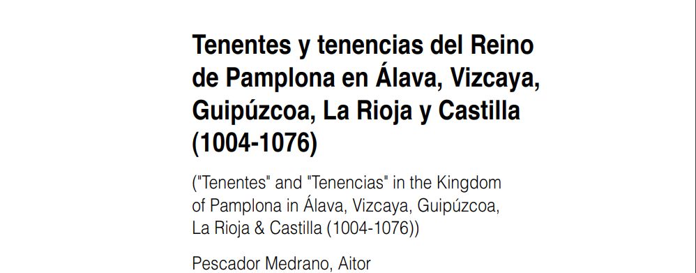 Título: Tenentes y tenencias del Reino de Pamplona en Álava, Vizcaya, Guipúzcoa, La Rioja y Castilla (1004-1076)