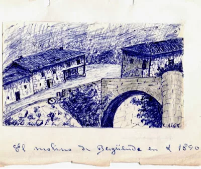 Pasado el puente, a la izquierda, había un mesón con un amplio portalón en su esquina S. E. (apreciable en el dibujo del molino de Bergüenda del s.XIX), que fue durante siglos punto de reunión de los vecinos en las tardes domingueras, donde hacían exhibición de su destreza en el antiquísimo juego de la “uta”. El juego es una especie de mezcla entre la petanca y los bolos