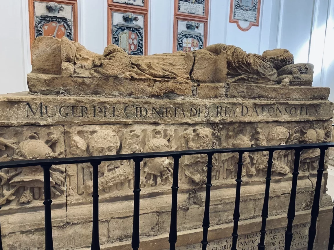 En San Pedro de Cardeña, están los sepulcros del Cid y de Jimena, pero no sus restos que fueron profanados por los franceses que también hicieron prácticas de tiro sobre la escultura ecuestre de la fachada del monasterio.