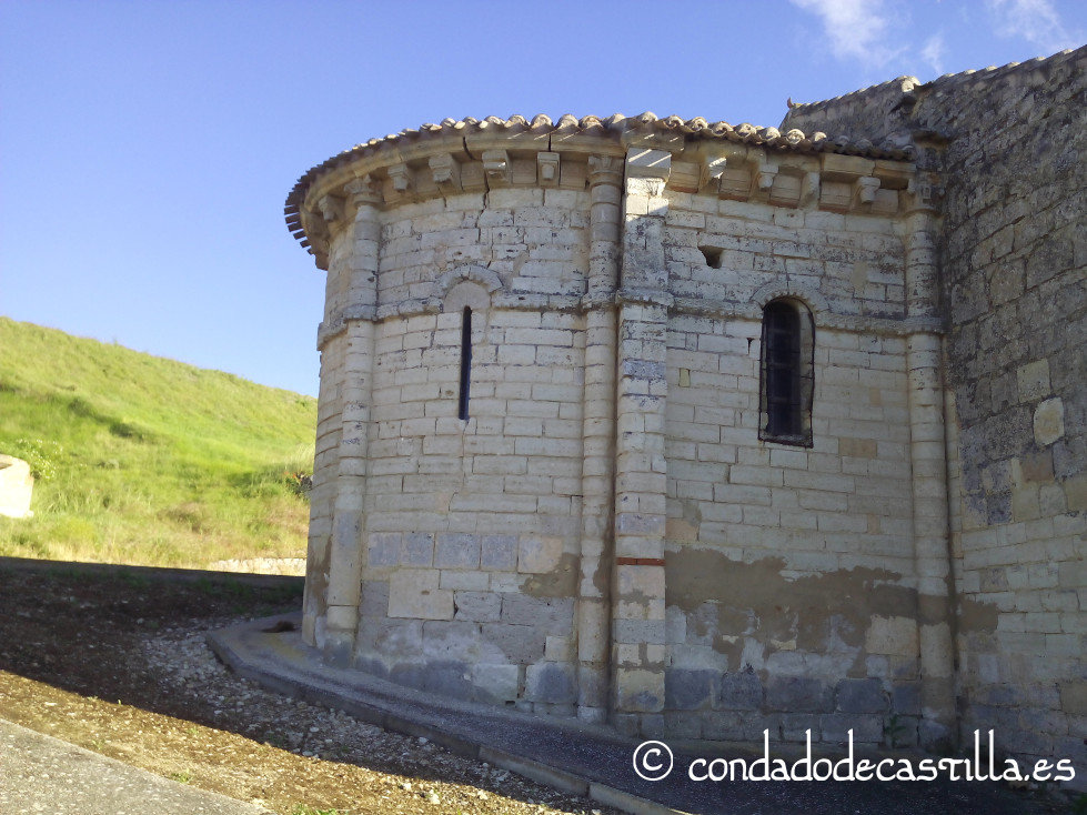 Pero lo que nos interesa son los restos de origen prerrománico existentes en la iglesia. Es muy probable que existiera una primera construcción del siglo IX o X, coincidente con la ocupación de estas tierras por el conde Munio Núñez a la par que se repoblaba la ciudad de Burgos. Esta primitiva basílica fue sustituida a fines del siglo XI o principios del siglo XII por otra de estilo románico. En su construcción se aprovecharon materiales anteriores: algunos romanos, como una estela y algunas columnas del interior de la iglesia; y otro elemento que es el que centra nuestro interés.
