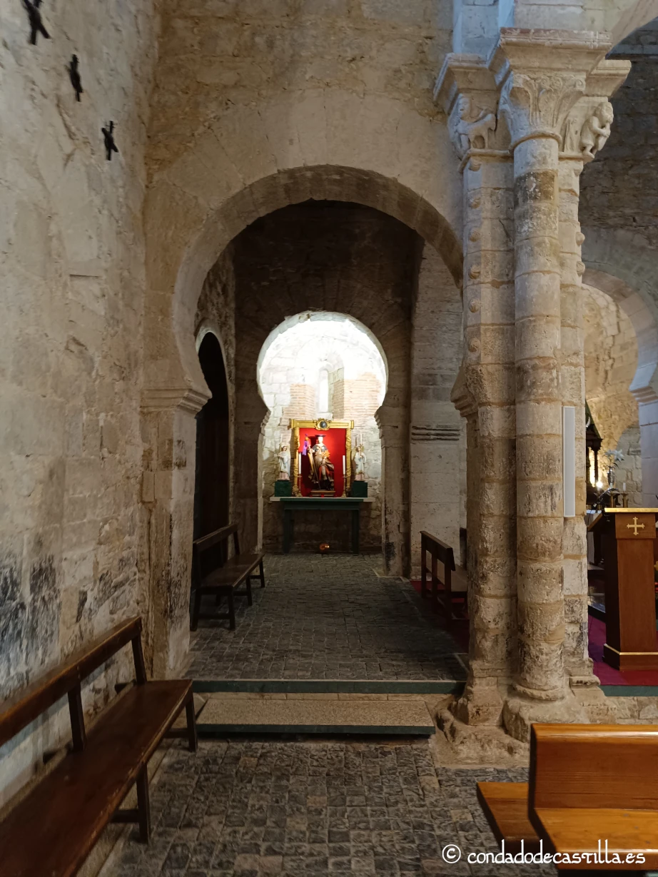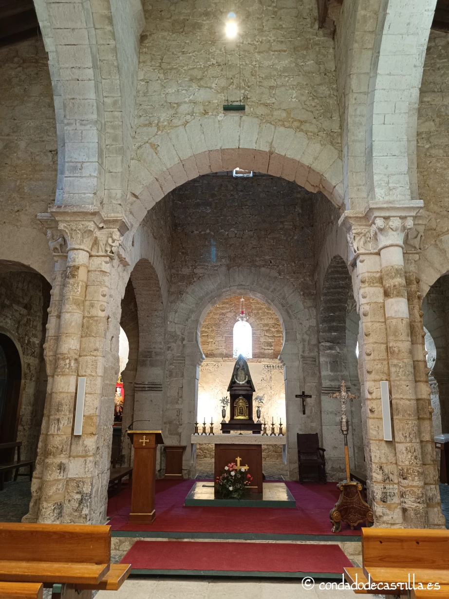 La nave, los pilares, el crucero y la cabecera son la manifestación más pura del románico. Los capiteles del crucero y de la cabecera están decorados con motivos vegetales, zoomórficos y figurativos, de gran calidad escultórica. Destacan los capiteles con escenas de lucha entre animales o con motivos de entrelazos vegetales, típicos del románico de la escuela de Valladolid.