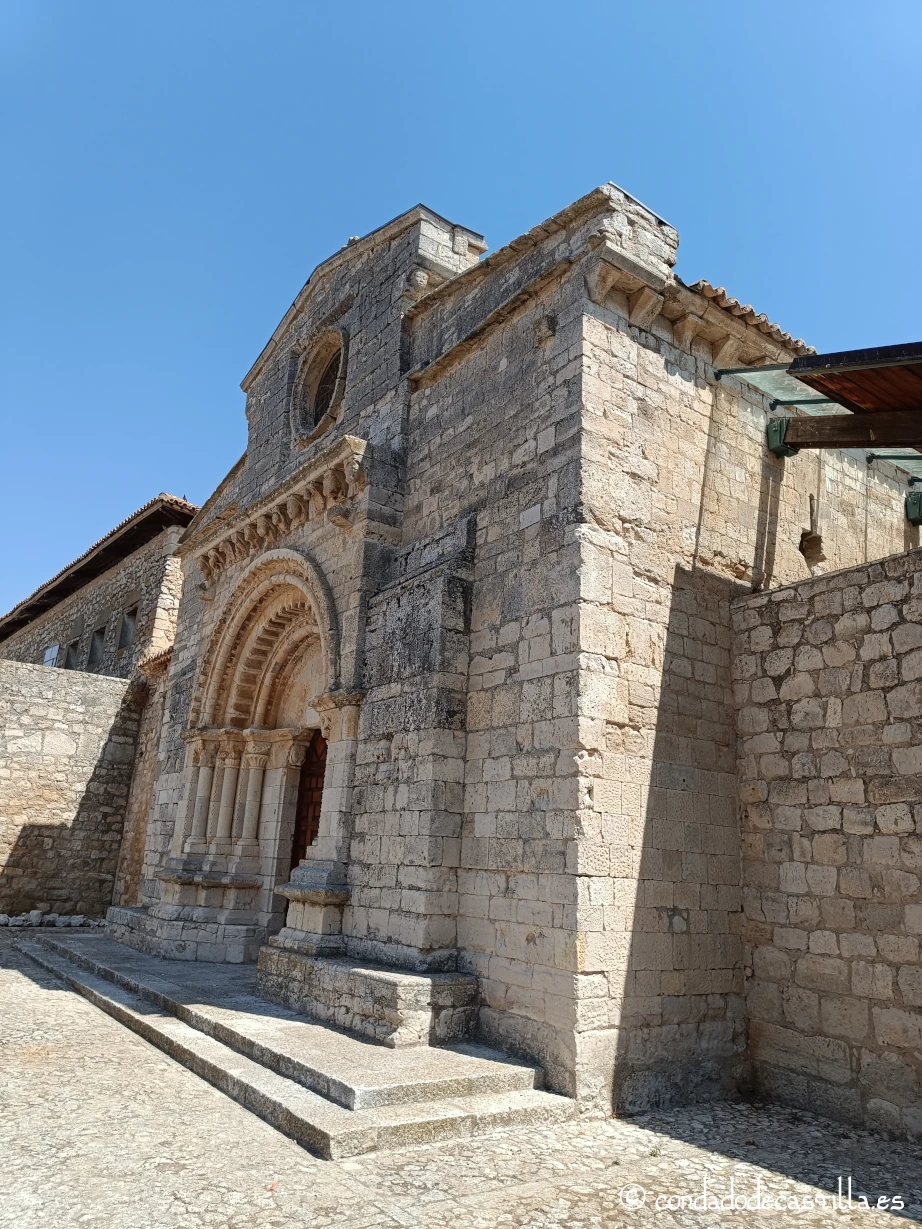 - Planta: La planta es longitudinal, con una nave única de grandes dimensiones. El transepto, aunque no es muy profundo, articula el espacio de manera clara, diferenciando la nave de los fieles del presbiterio. La capilla mayor o ábside central, de planta semicircular, es el elemento más característico del románico pleno. A su lado, las capillas laterales, de planta rectangular, rematan los brazos del transepto. La capilla funeraria, situada en el lateral del muro occidental de la nave, presenta una planta cuadrada.