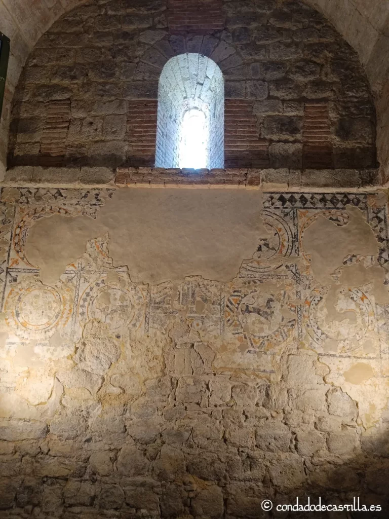 Pinturas prerrománicas de la cabecera. En la zona de la cabecera, se pueden encontrar restos de pinturas murales que se atribuyen a la fase prerrománica o, al menos, a una fase muy temprana, posiblemente de entre los siglos X y XII. Estas pinturas se caracterizan por una marcada sencillez y por el uso de motivos geométricos y simbólicos, lo que las aleja de la complejidad narrativa de la pintura románica posterior. Lo más destacado de estas pinturas son las representaciones de leones o figuras zoomorfas inscritas en círculos.