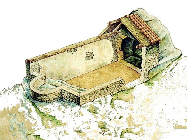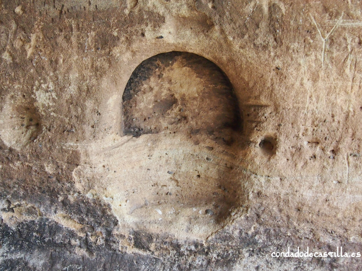 - Un ábside excavado íntegramente en la parte más destacada del afloramiento rocoso. Tiene una bóveda de cañón pulida al interior con unas dimensiones aproximadas de 2 metros de alto y ancho pro 2,5 metros de largo. En la pared meridional se ha excavado una pequeña hornacina con arco de medio punto.