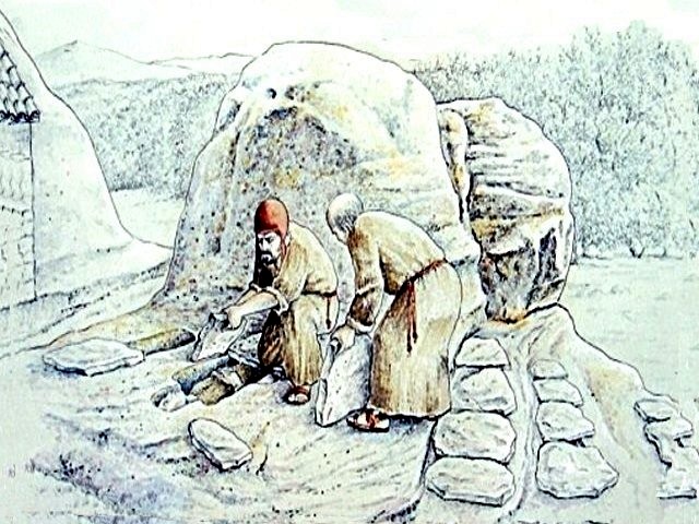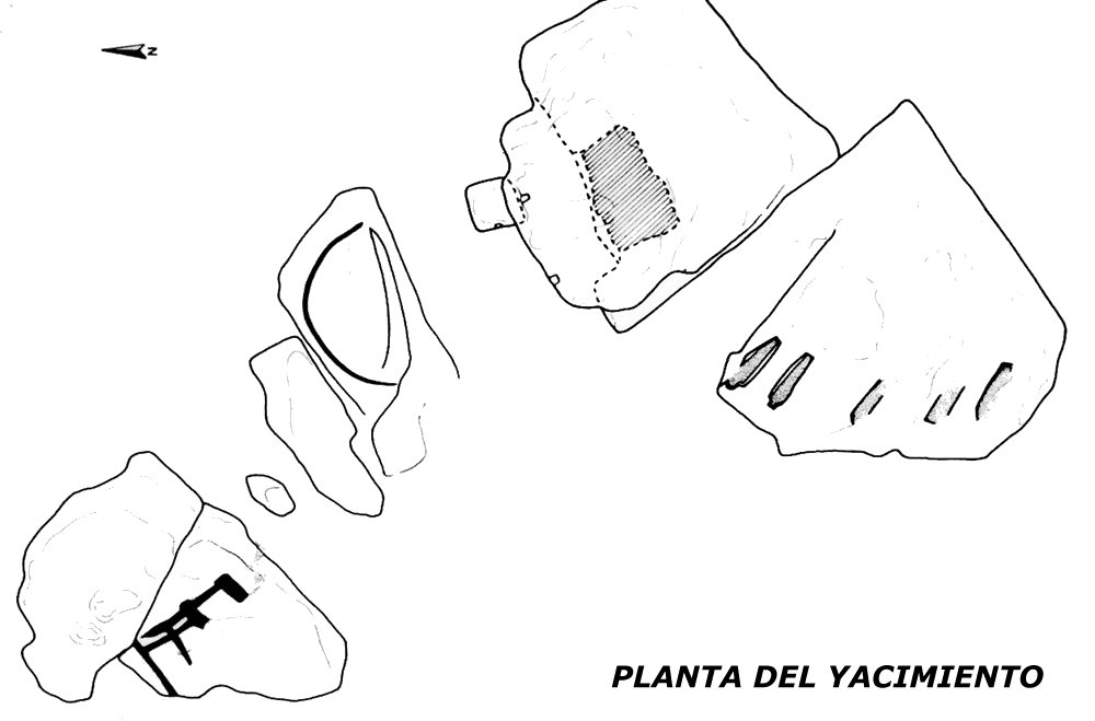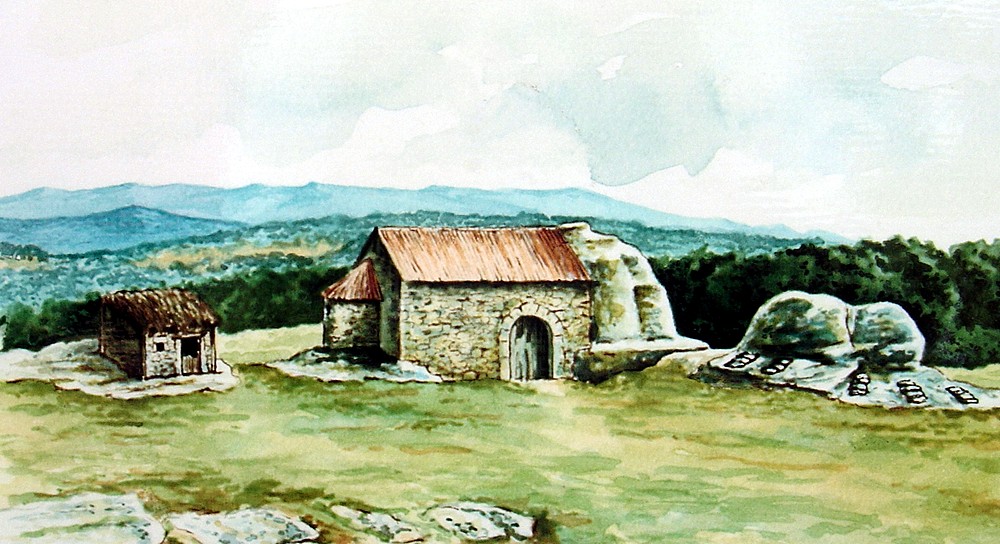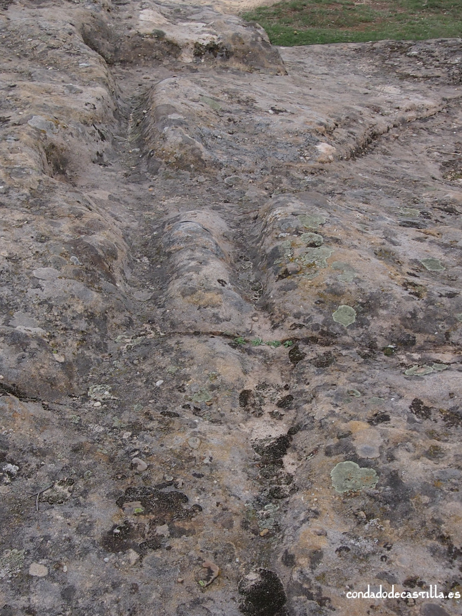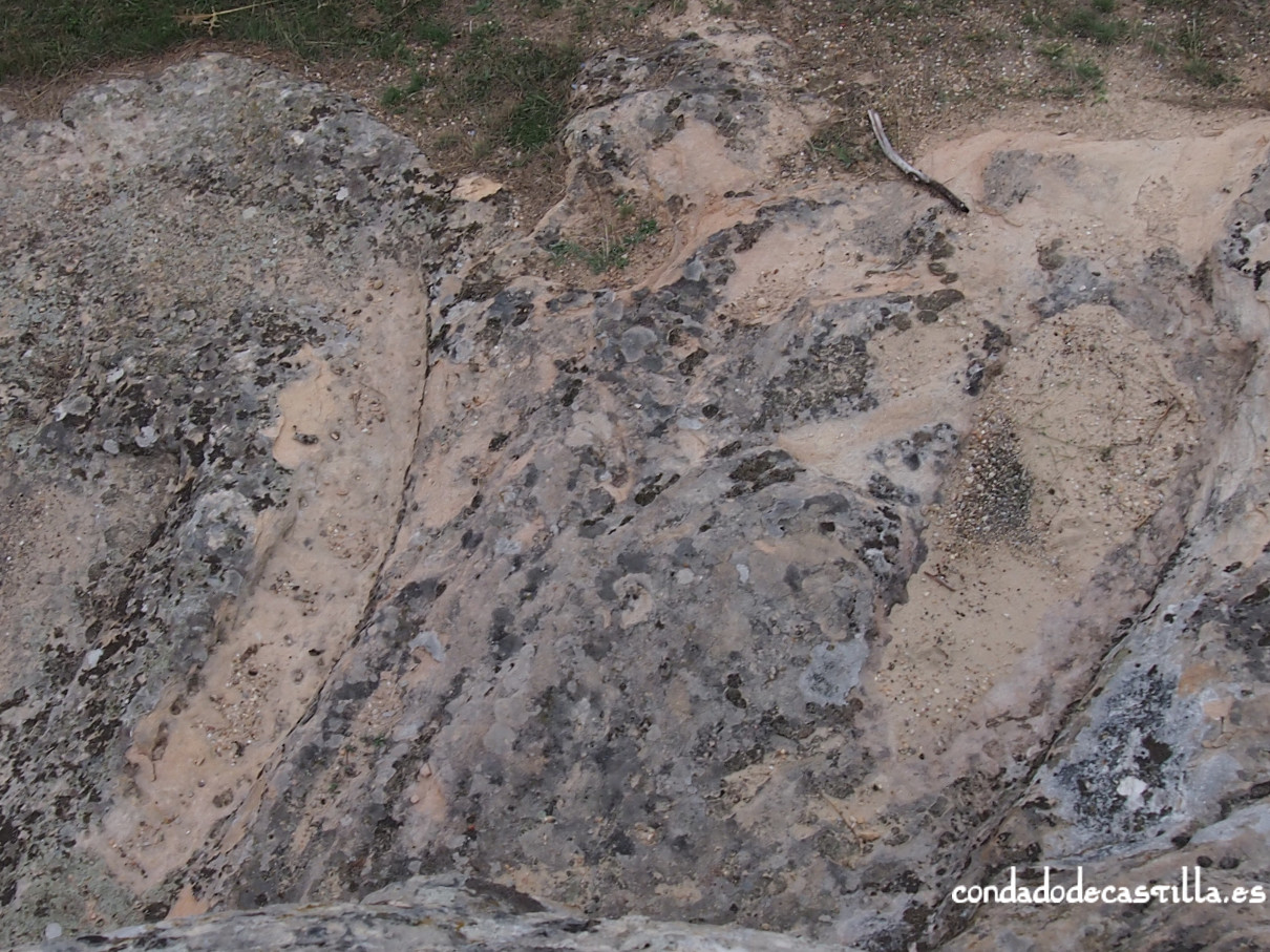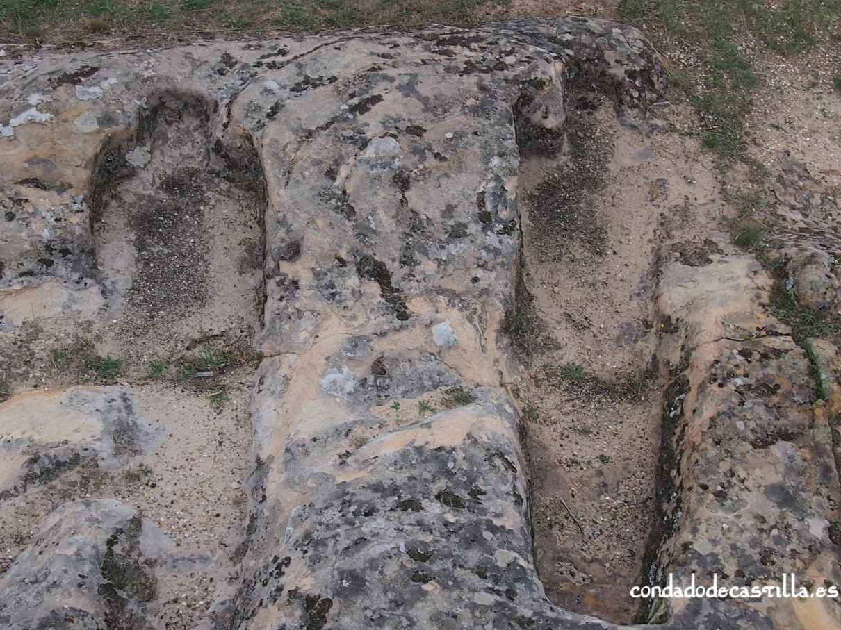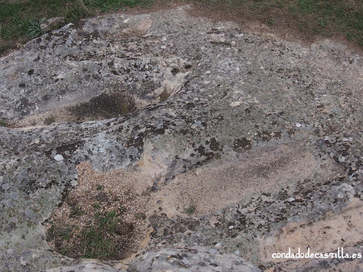 En la superficie rocosa situada al oeste de la iglesia se aprecian una serie de improntas talladas que han sido interpretadas como restos de una estructura habitacional. Se trata de unos rebajes alineados, no muy profundos, asociados a varios agujeros de poste, que definen parcialmente una edificación de planta cuadrada.