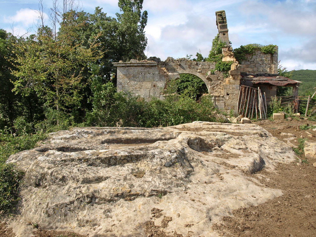 Junto a la iglesia es visible una necrópolis altomedieval tallada en un afloramiento rocoso compuesta por siete tumbas antropomorfas orientadas este-oeste (pies-cabeza), y un sarcófago exento, utilizado como abrevadero, de idéntica morfología. Su estado es de abandono y expolio avanzados y se encuentra listado en la Lista Roja de Patrimonio de Hispania Nosta.