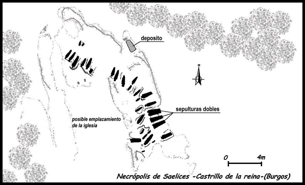 A unos 2 km. del al suroeste del núcleo de Castrillo de la Reina se encuentra la necrópolis de Saelices formada por alrededor de una treintena de sepulturas todas ellas excavadas en la misma plataforma rocosa. La disposición de las tumbas en semicírculo alrededor de una explanada puede deberse a la existencia de una iglesia ya desparecida.