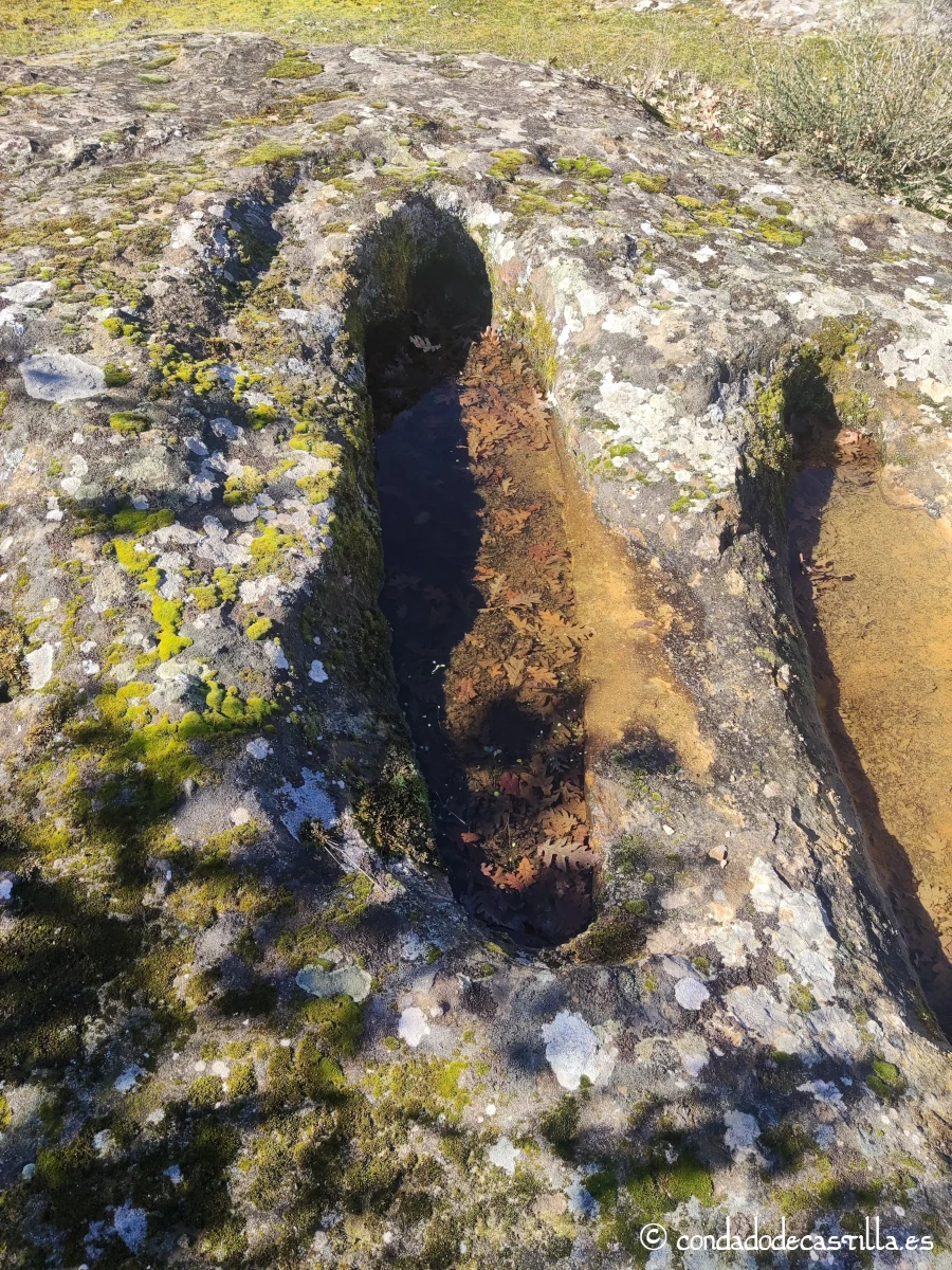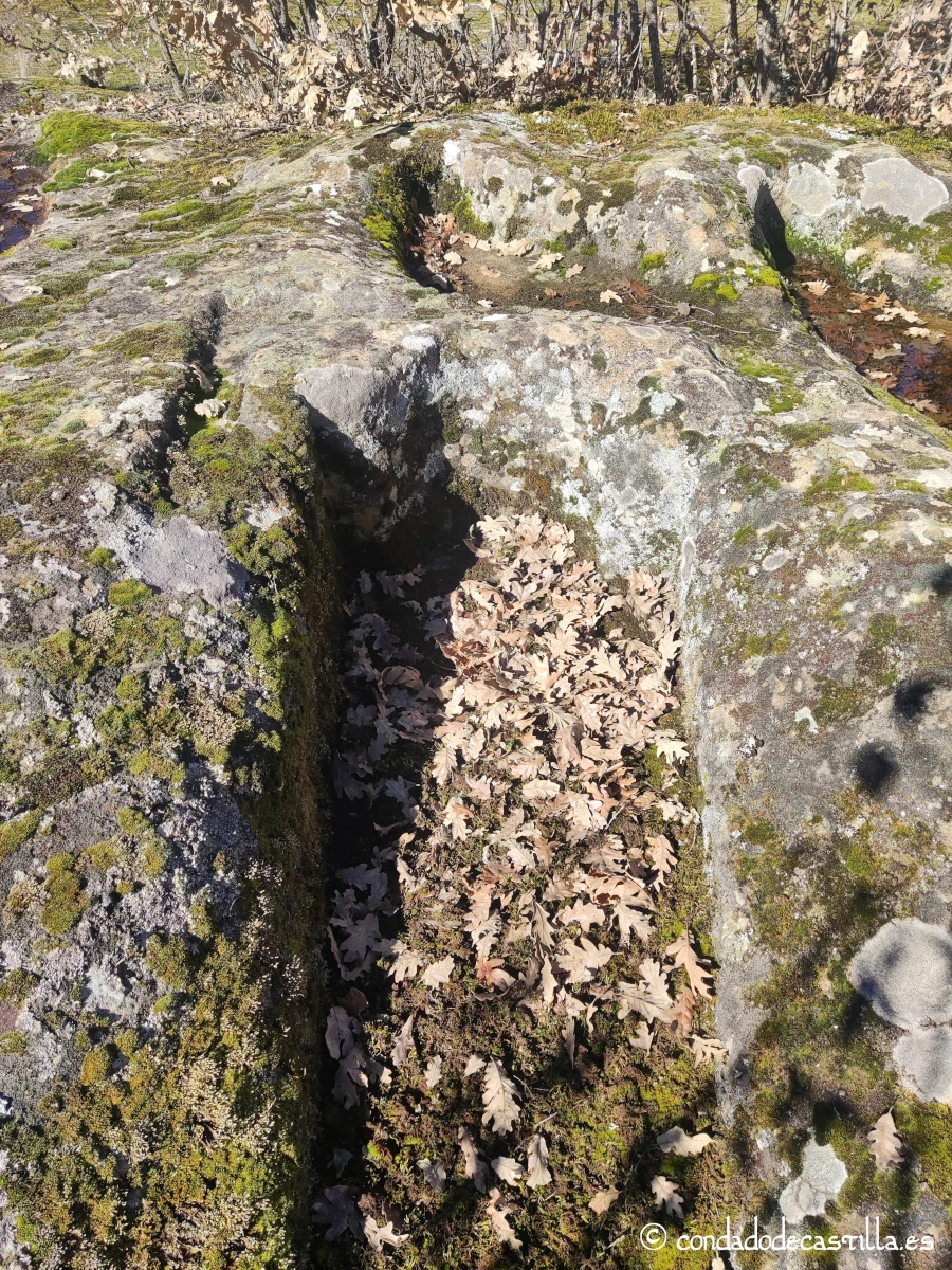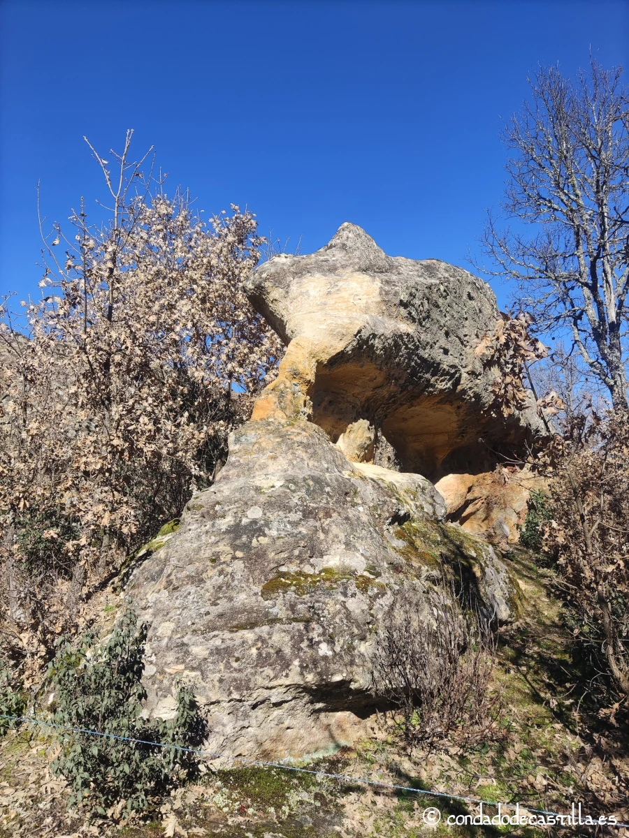 Unos metros antes de llegar a la necrópolis existe una roca en la que parece que pudo haber algún tipo de eremitorio y que solo conserva hoy en día lo pudo ser una ventana