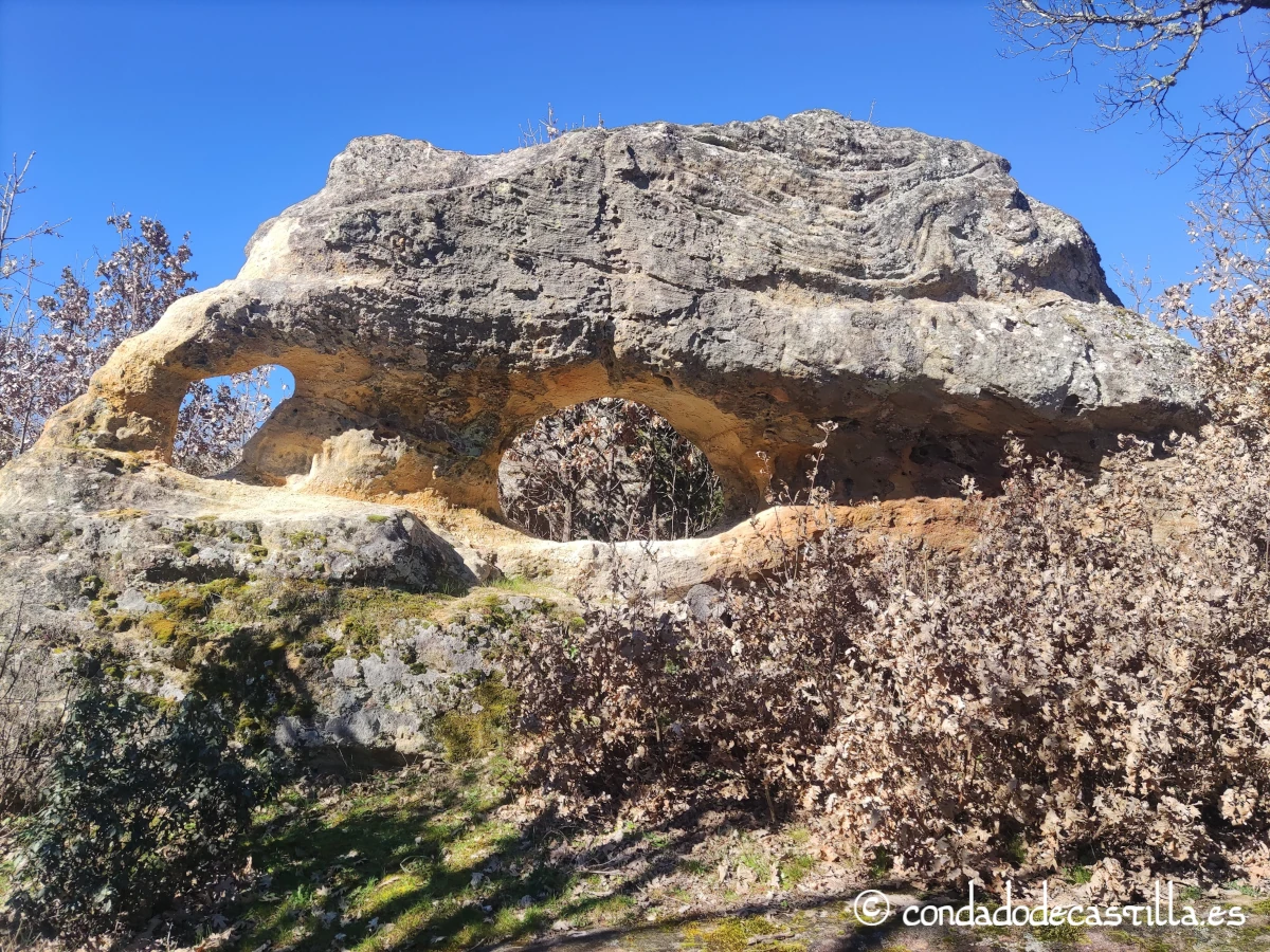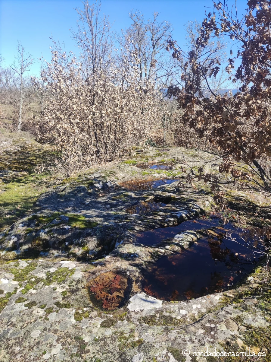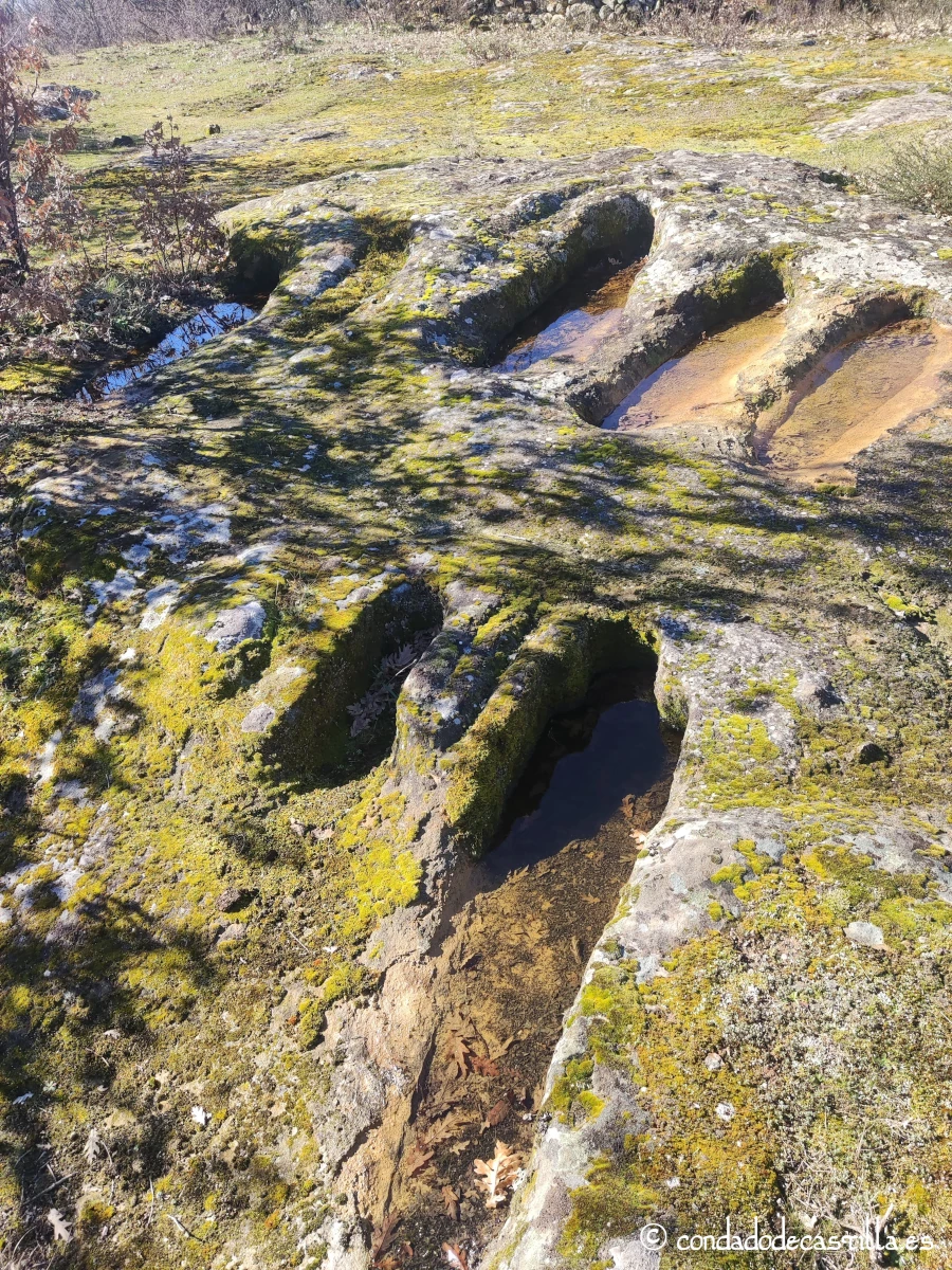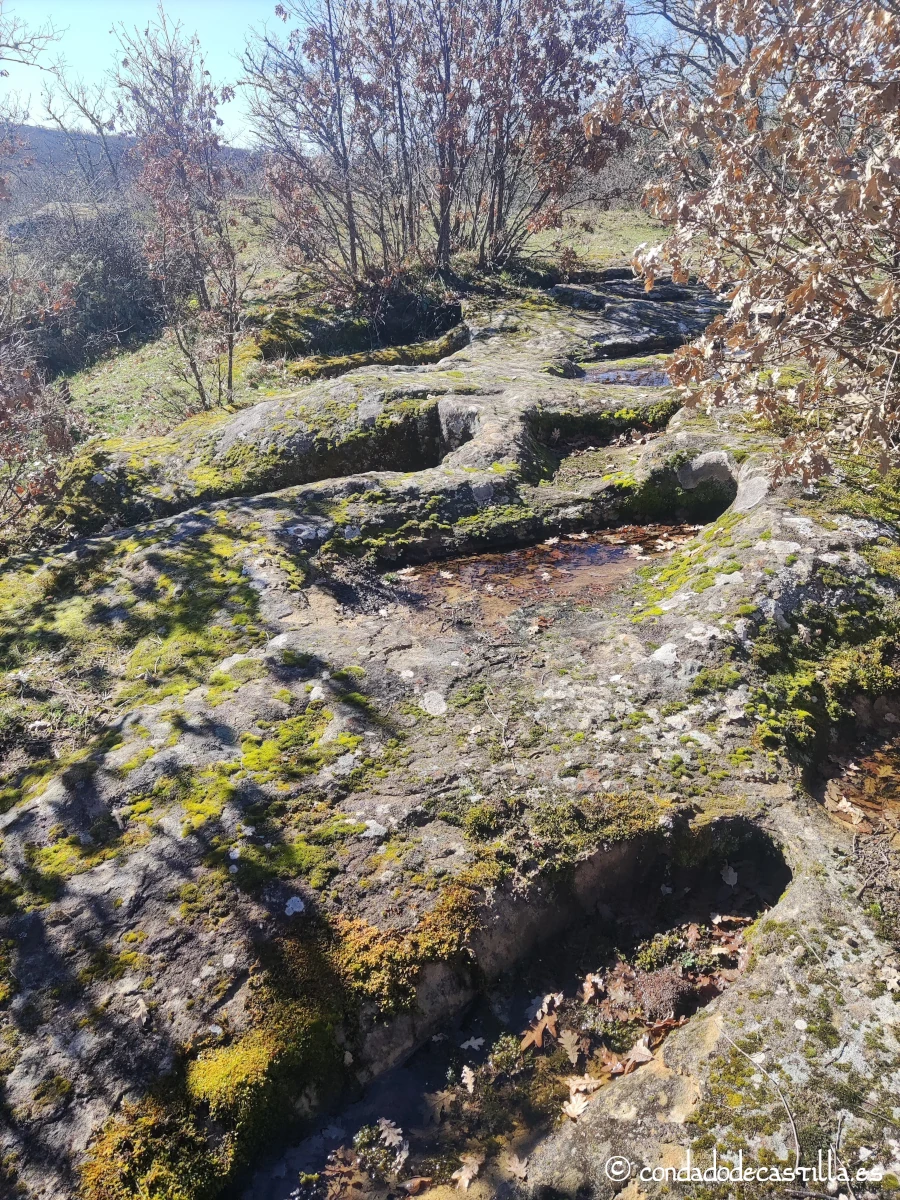 Unos metros antes de llegar a la necrópolis existe una roca en la que parece que pudo haber algún tipo de eremitorio y que solo conserva hoy en día lo pudo ser una ventana