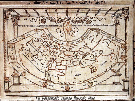 Pomponio Mela era hispano, de Algeciras, y vivió en el primer siglo después de Cristo, falleciendo en torno al 45 aC. Escribió en latín una geografía del mundo antiguo en tres libros (De Chrographia o De Situ Orbis) en época de la invasión de Britania por Claudio (43-44). En el tercer libro se hace una descripción de Hispania. Su trabajo fue usado como fuente por otros entre los que se encuentra Plinio el Viejo.