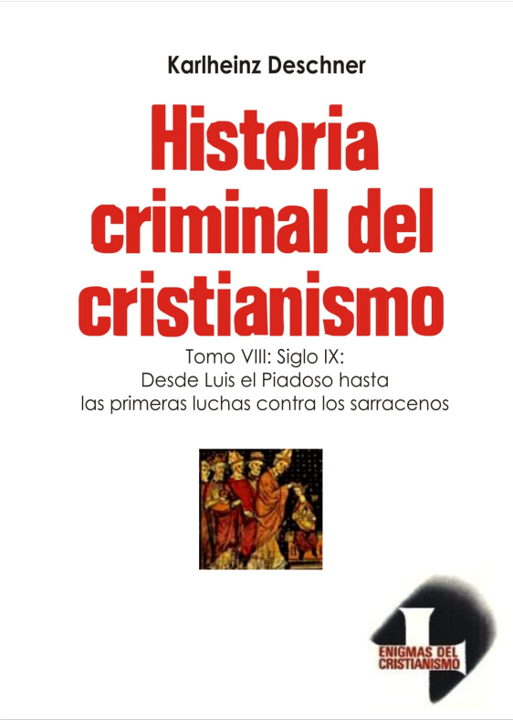 Bajo el título de «Siglo IX: Desde Luis I el Piadoso hasta las primeras luchas contra los sarracenos» persiste el autor en su voluntad insobornable de presentar en forma despiadada los crímenes que al socaire del honor y protección de la Iglesia y de la expansión del cristianismo llevaron a cabo los sucesores de Carlomagno y sus acólitos los papas, obispos y abades. Precede a esa enloquecida procesión la Réplica que Deschner da a las críticas formuladas por una veintena de representantes de la historiografía tradicional a los primeros volúmenes de Historia criminal del cristianismo. Como Canetti, también Deschner odia el respeto de los historiadores a lo ocurrido simplemente porque ocurrió y odia su impotencia que los fuerza a doblar el espinazo ante cualquier forma de poder.