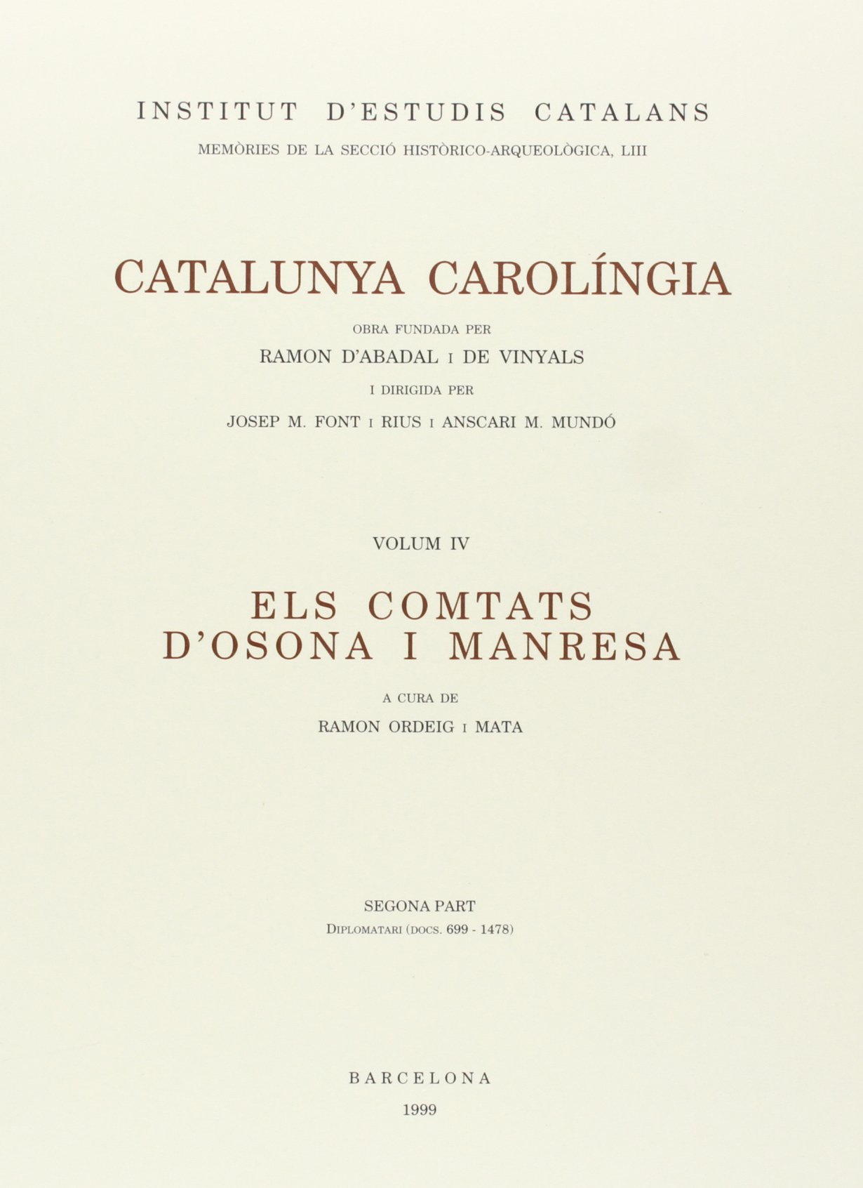 Segunda parte del volumen de fuentes históricas relativas a los condados de Gerona, Besalú, Ampurias y Peralada dentro de la colección Catalunya Carolíngia. Incluye: Diplomatario (docs. 387-630), mapas e índice.