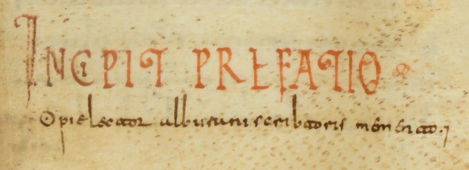 Frase donde se indica la autoría de Alburano: O pie lector, Alburani scribtoris memento. (Biblioteca Nacional de Francia, ms. 2170, fol. 87 r)