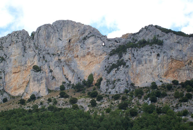 Continuaremos esta senda, siempre junto a la base del roquedo, hasta alcanzar la ancha entrada a un canal.