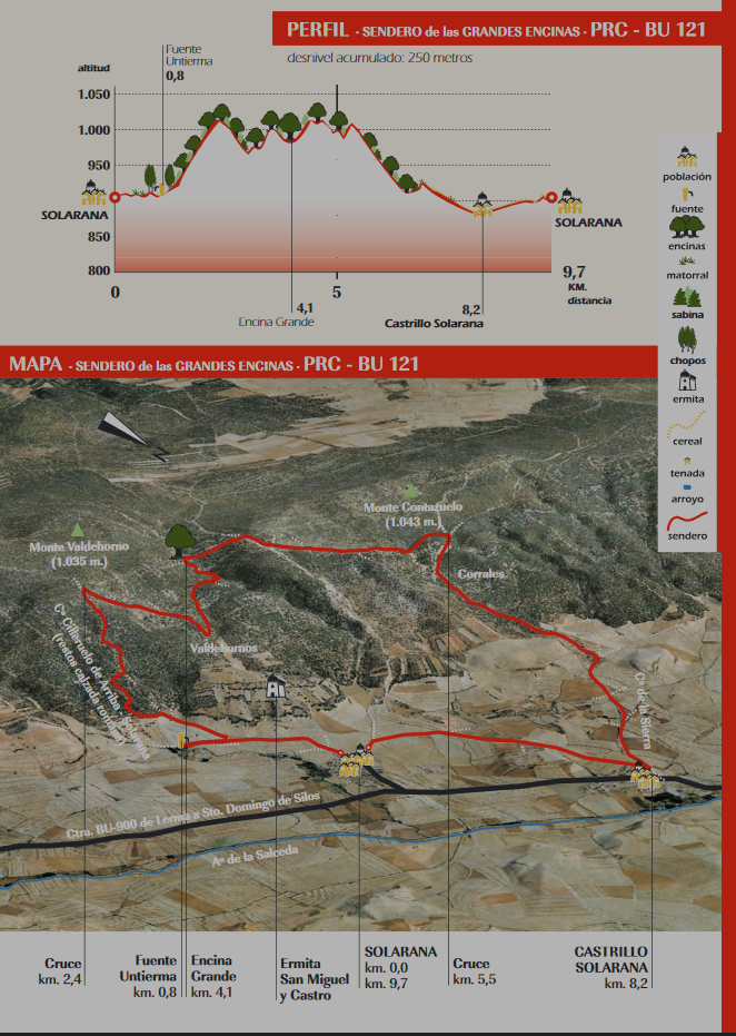 Sendero circular PR-BU-121 . Sendero de las Grandes Encinas entre Solarana y Castrillo Solarana de 9,7 km.