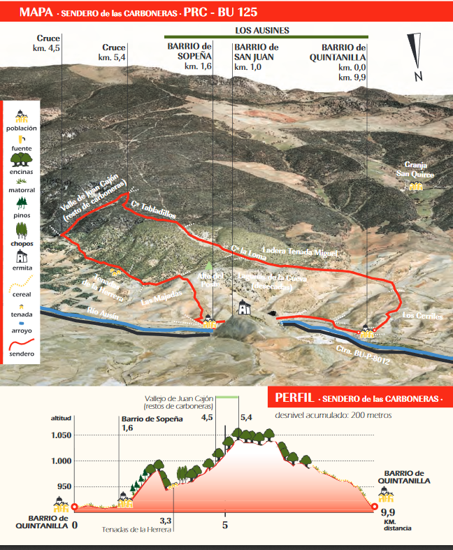 Descarga de archivo PDF informativo ruta PR-BU-125. Sendero de las Carboneras en Los Ausines de 9,9 km: