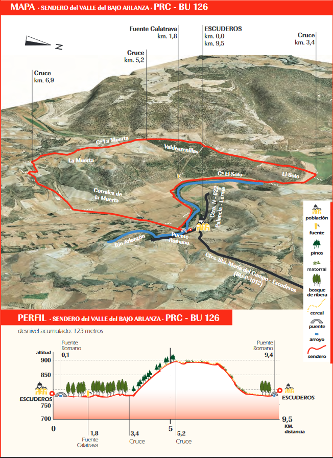 Descarga de archivo PDF informativo ruta PR-BU-126. Sendero por el Valle del Bajo Arlanza en Escuderos: