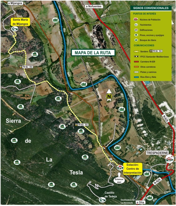 Comienza con un suave recorrido desde la antigua estación del ferrocarril Santander-Mediterráneo de Trespaderne, hoy transformada en Centro de Interpretación Arqueológica de la Horadada. Más adelante el camino se adentra en un pinar resinero y campos agrarios hasta llegar a los restos de la iglesia visigoda.