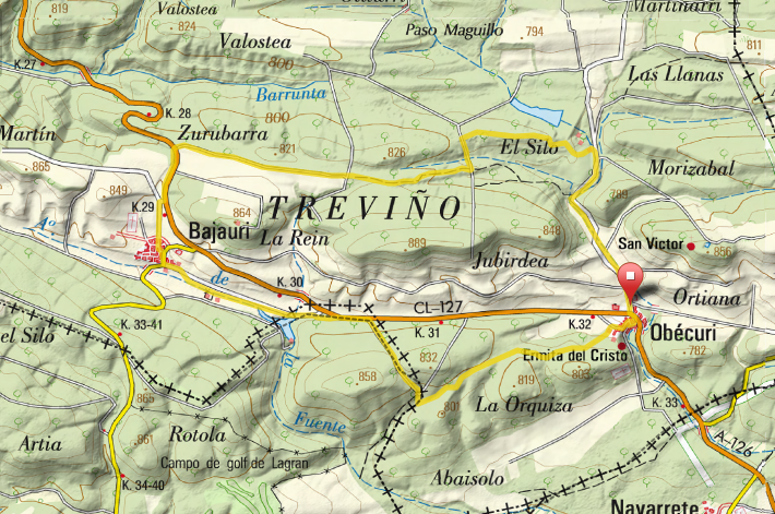 La ruta parte desde la localidad de Obécuri hacia el Norte, por el camino de Marquínez, girando a la izquierda junto a las instalaciones del riego, continuando por el camino que da acceso a la balsa de riego construida en el paraje del Silo, para el regadío de los campos de patatas, donde se pueden observar diferentes especies de aves acuáticas.
