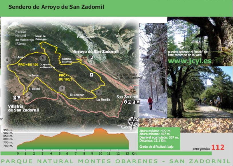 Sendero por el espacio natural de Montes Obarenes – San Zadornil entre las localidades de Arroyo de San Zadornil y Villafría de San Zadornil de 13,6 km. de recorrido.