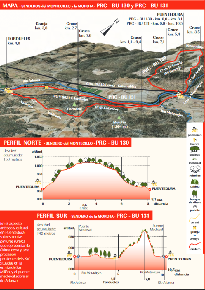 Senderos circulares PR-BU-130 y PR-BU-131. Senderos del Montecillo (8,1 km.) y La Morota (10,5 km.) entre Puentedura y Tordueles.
