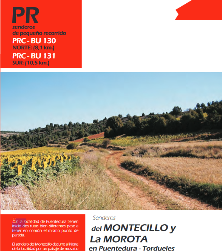 Descarga de archivo PDF informativo de las rutas PR-BU-130 y PR-BU-131. Senderos del Montecillo y La Morota entre Puentedura y Tordueles: